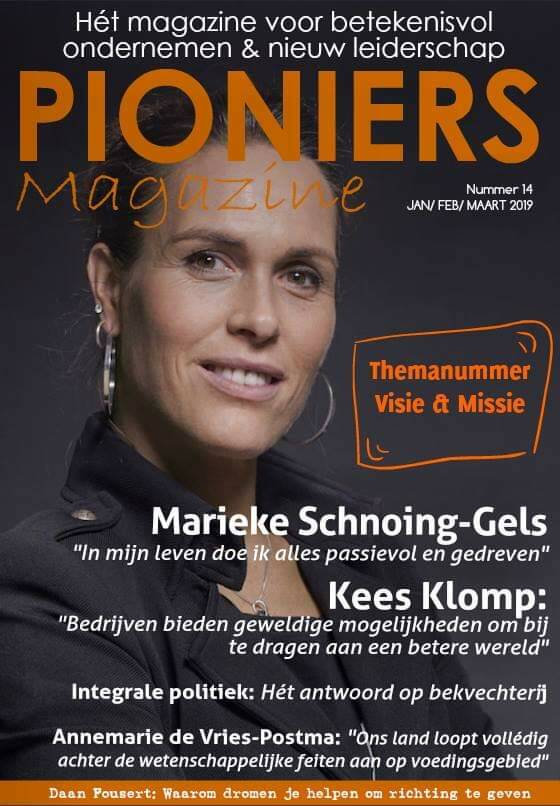 Twee jaar geleden werd ik geïnterviewd voor het Pioniersmagazine. Het thema van dat nummer was Visie en Missie. Ik heb veel verschillende dingen gedaan in mijn werkleven. Maar bij alles wat ik heb gedaan is de passie en de gedrevenheid iets wat mensen terug zien en wat ik zelf ook zo ervaar. Ik heb de link naar het magazine en het interview hieronder opgenomen.